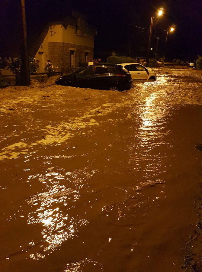 Une pluie qui a duré environ 6 heures du 24 au 25 juin, a affecté certaines régions de la Normandie, en particulier le Calvados. Météo Basse-Normandie a déclaré via les médias sociaux que pas moins d'un mois de pluie était tombé au cours de cette période.